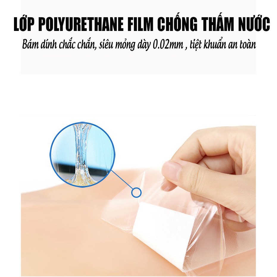 • Chống thấm nước tuyệt đối: Lớp màng PU ngăn nước và vi khuẩn hiệu quả, giúp bạn thoải mái tắm rửa hay làm việc mà vết thương vẫn khô ráo.
