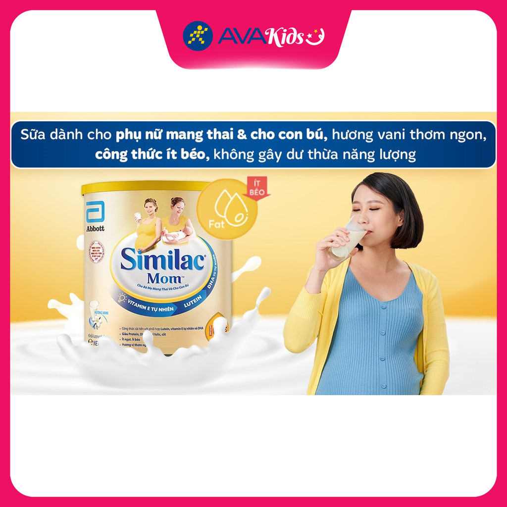Hương vani thơm ngon, ít béo, giúp mẹ bầu dễ uống, không lo tăng cân. Được sản xuất tại Singapore/Ireland, Similac Mom đảm bảo chất lượng lâm sàng cho mẹ và bé.