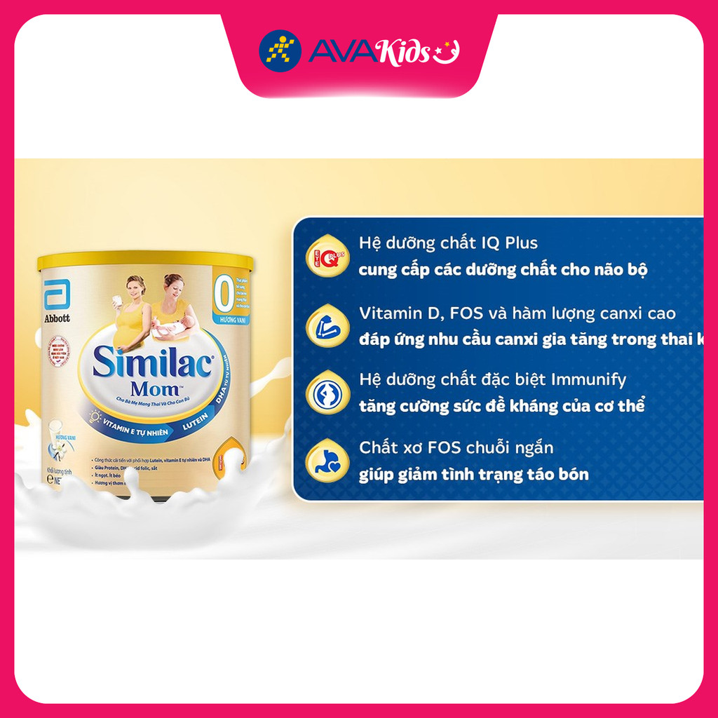 Bạn đang lo lắng về táo bón, thiếu máu hay dinh dưỡng không đủ cho thai nhi? Sữa bầu Similac Mom 400g từ thương hiệu Similac danh tiếng của Mỹ là giải pháp tối ưu! Với hệ dưỡng chất IQ Plus và Immunify, sản phẩm hỗ trợ phát triển não bộ thai nhi, tăng cường đề kháng và giảm táo bón.