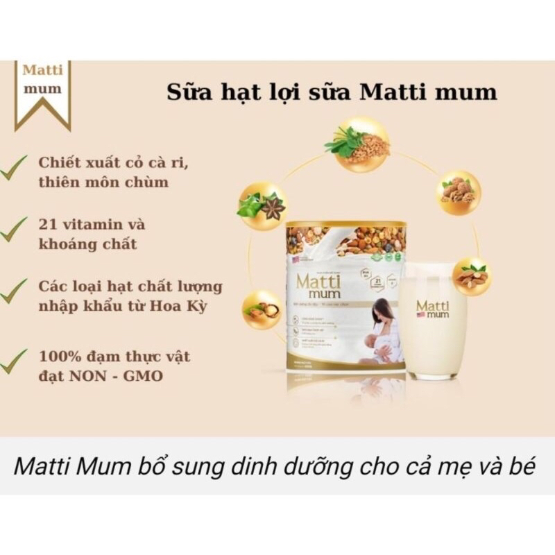 1. Sữa hạt lợi sữa Matti Mum cho mẹ sau sinh lon 650g chính hãng -Sữa về nhanh và dinh dưỡng hơn cho bé