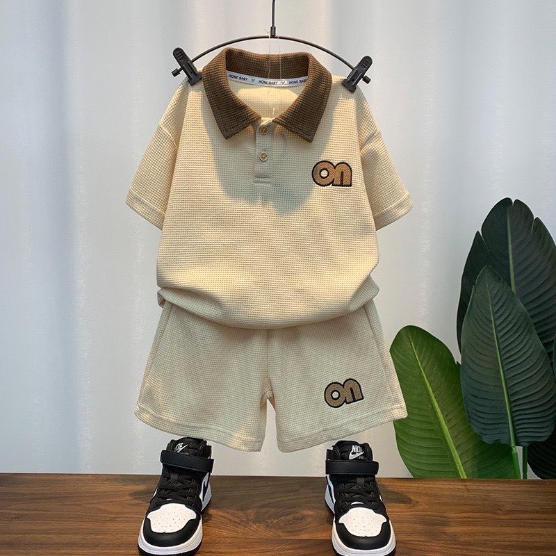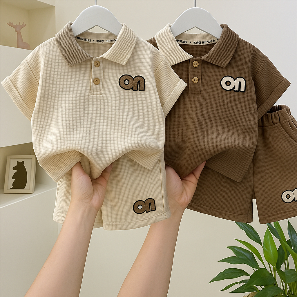 2. Bộ Cộc Tay Cho Bé Trai Polo Chữ On Chất Vải Cotton Co Giãn 4 Chiều Hà Duyên Kids