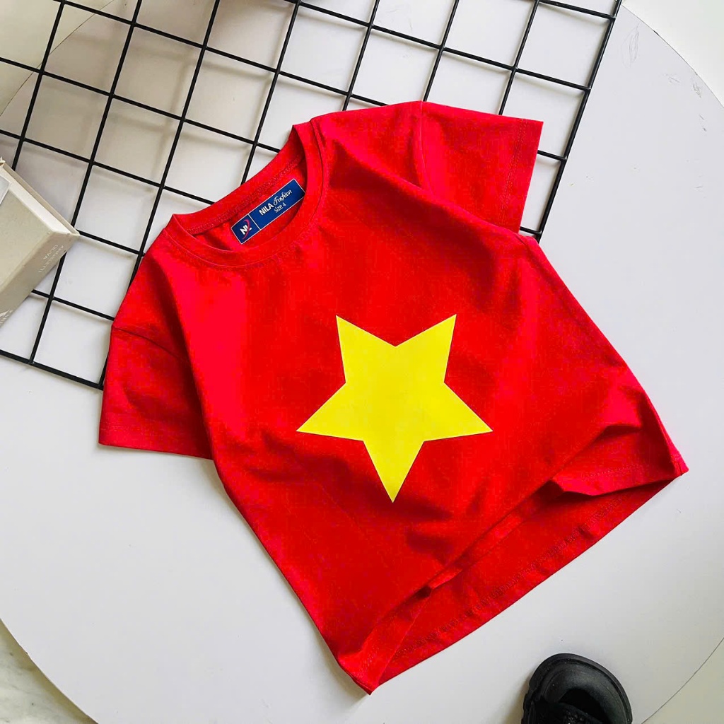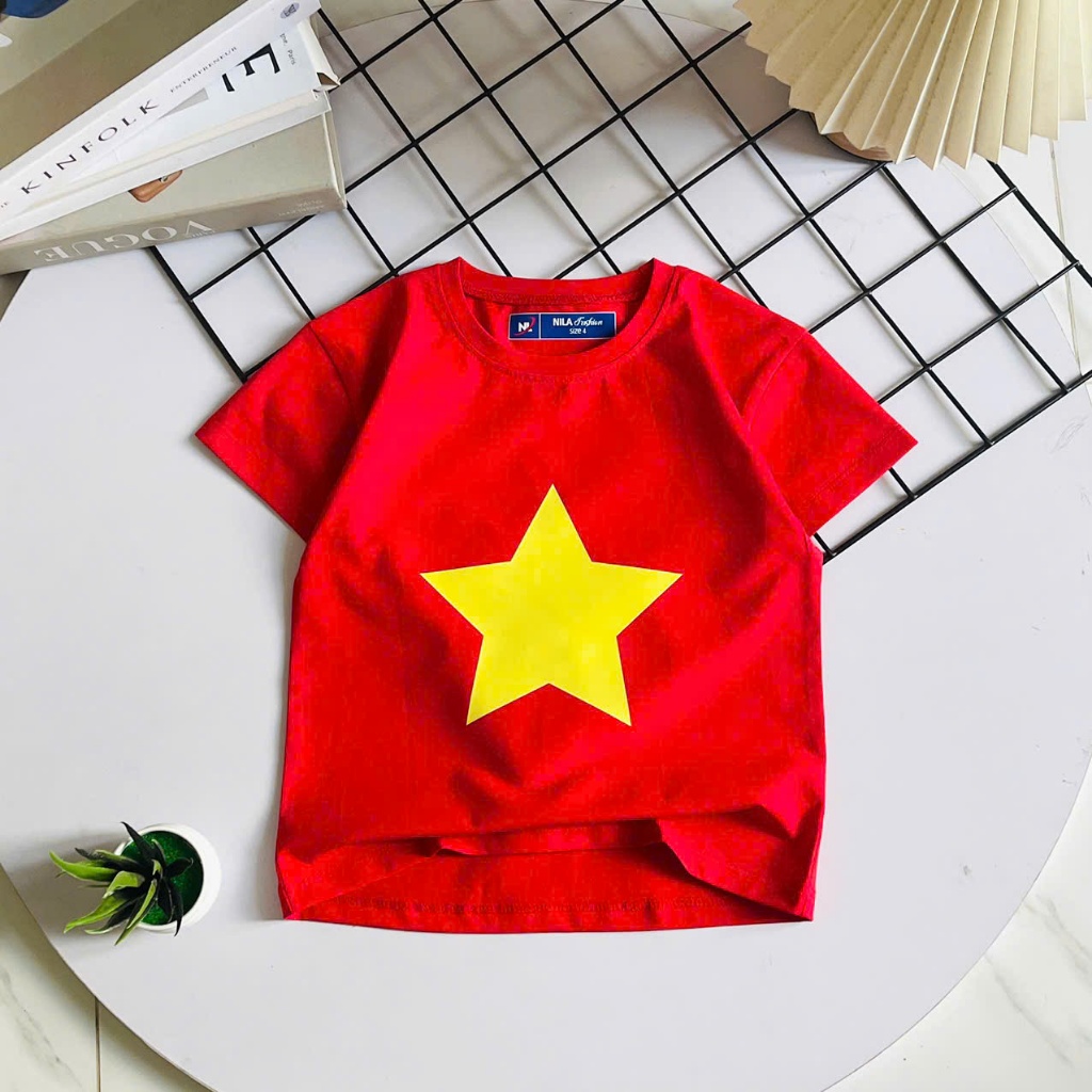 5. Áo thun đỏ sao vàng cotton 100% co giản 4 chiều cho bé từ 10-38kg