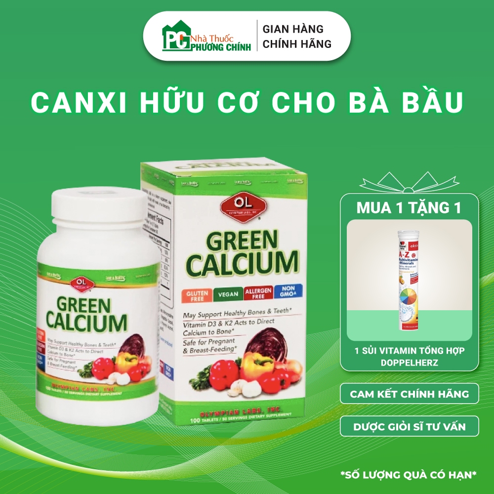 Canxi Hữu Cơ Olympian Labs Green Calcium là "cứu tinh" cho 9/10 mẹ bầu vật lộn với táo bón, nóng trong khi bổ sung canxi thông thường. Sản phẩm nhập khẩu nguyên hộp từ Mỹ, ứng dụng Calcium Gluconate hữu cơ có cấu trúc giống 99% canxi sinh học trong cơ thể, tan nhanh trong máu mà không gây lắng cặn thận hay kích ứng dạ dày.