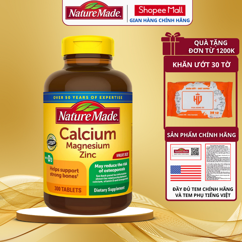 Canxi Nature Made Calcium Magnesium Zinc + D3 là "trợ thủ đa năng" giúp mẹ bầu đánh bay đau lưng, chuột rút và người lớn tuổi chặn đứng loãng xương – "kẻ thù" âm thầm hủy hoại 30% mật độ xương sau tuổi 50. Sản phẩm nhập khẩu chính hãng từ Mỹ, sở hữu công thức 4 trong 1 kết hợp Canxi – Magie – Kẽm – D3, tăng gấp đôi khả năng hấp thu canxi so với sản phẩm thông thường.