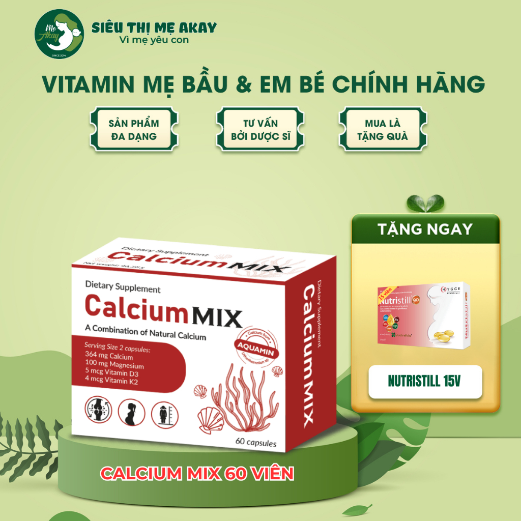 Viên uống Canxi hữu cơ Calcium Mix là "trợ thủ vàng" giúp mẹ bầu và phụ nữ sau sinh xóa tan nỗi lo đau lưng, chuột rút ban đêm – hệ quả của thiếu hụt canxi ở 87% thai phụ. Sản phẩm nhập khẩu chính hãng từ Ba Lan, ứng dụng Aquamin độc quyền chiết xuất từ tảo đỏ Iceland – nguồn canxi hữu cơ giàu 72 khoáng chất tự nhiên, thẩm thấu gấp 3 lần canxi thông thường.