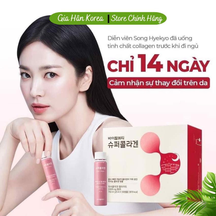 - Collagen Tinh Khiết Nồng Độ Cao: 10,000mg collagen/chai tác động sâu đến lớp hạ bì, phục hồi 80% độ đàn hồi chỉ sau 4 tuần – da căng mịn như búp bê Hàn!