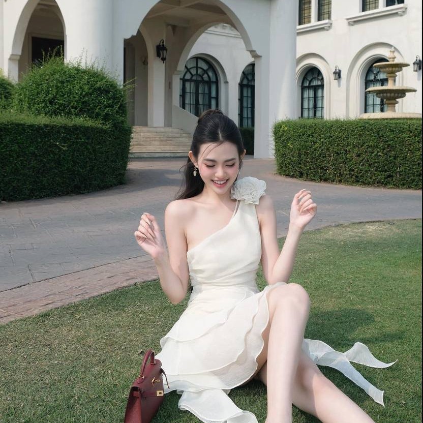2. Đầm Dự Tiệc Lệch Vai Tua Rua Kèm Hoa Sang Chảnh Xinh Lung Linh Cho Các Nàng KC1524