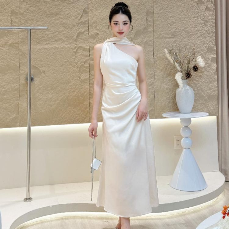5. Đầm Lụa Dự Tiệc Dáng Dài Sang Chảnh SC653 Váy Lụa Dự Tiệc Cưới Tà Chéo Cổ Sang Trọng