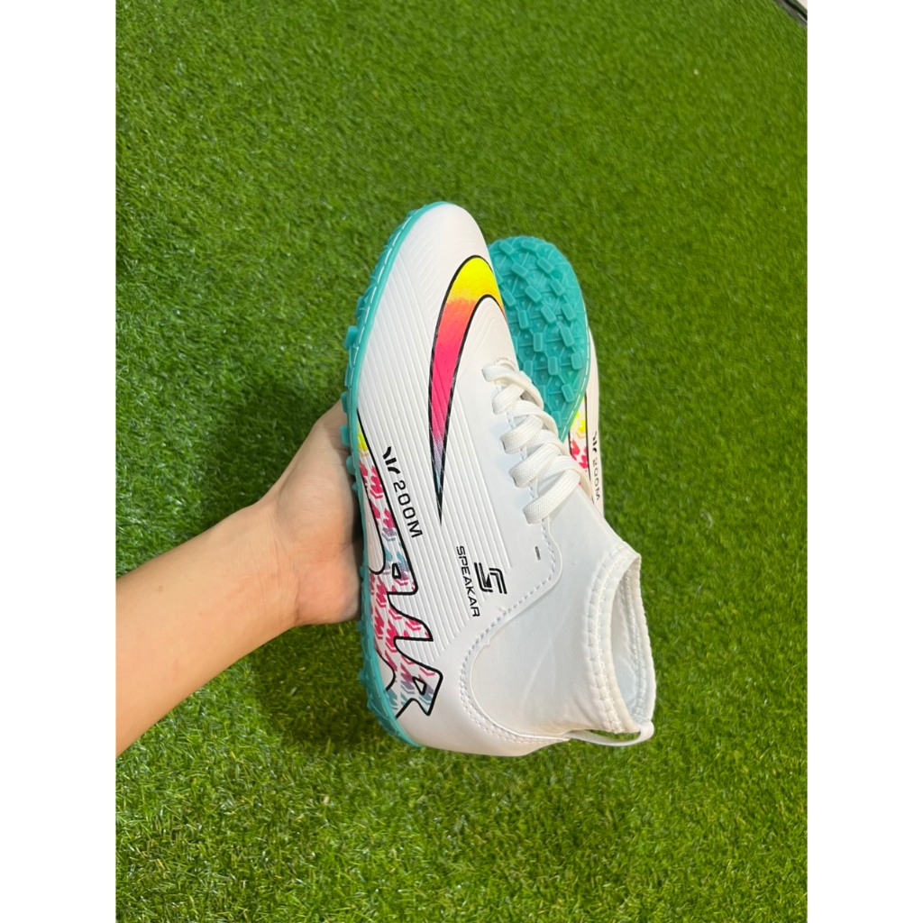 Bạn mệt mỏi vì giày đá bóng dễ tuột, không ôm chân khi thi đấu? Airmax_77A_May cổ cao từ Speakar sẽ giải quyết nỗi đau đó! Với thiết kế cổ thun ôm sát, giày chỉ nặng 208g/chiếc, mang lại cảm giác nhẹ nhàng, linh hoạt trên sân cỏ nhân tạo 5-7-9 người.