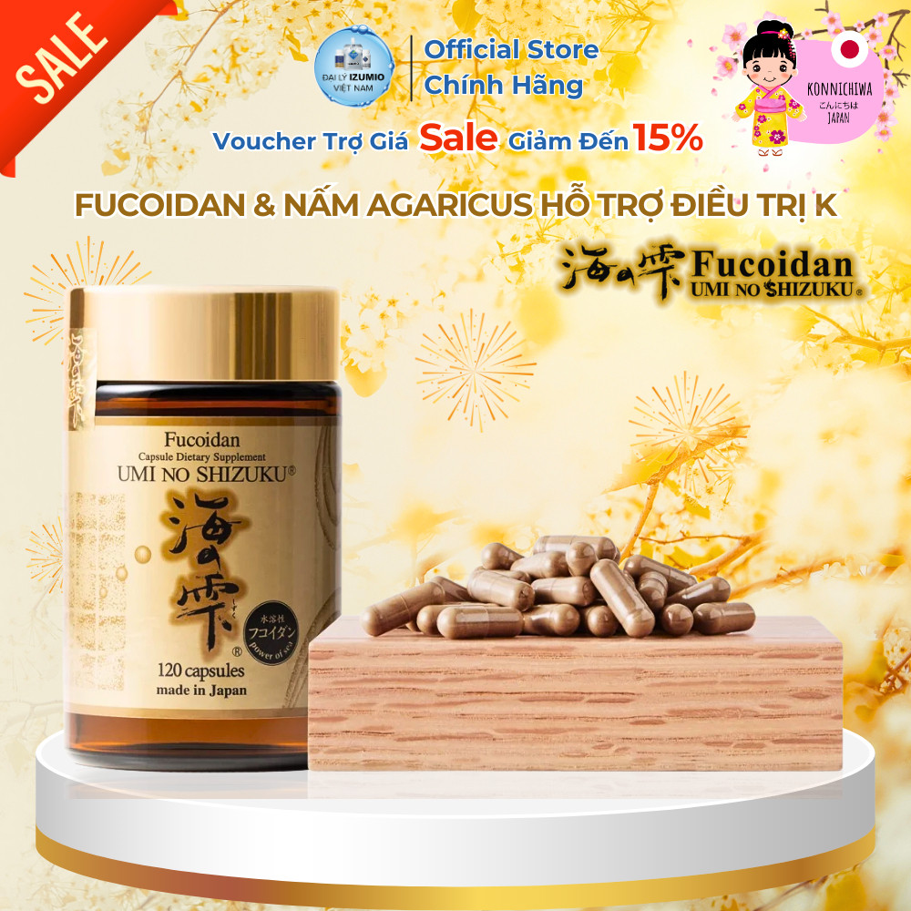 Viên uống Fucoidan Umi No ShizukuFucoidan từ Mozuku, Mekabu, Nấm AgaricusHỗ trợ điều trị ung thư, tăng cường miễn dịch120 viên