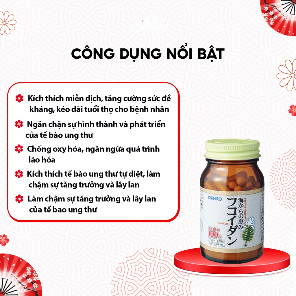 Tảo Fucoidan OrihiroFucoidan từ Mekabu (80%)Phòng ngừa ung thư, tăng cường sức khỏe90 viên