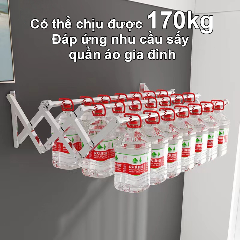 Sức mạnh “khủng long” 500kg: Chịu tải gấp 10 lần giàn phơi thông thường – thoải mái phơi 20kg chăn bông + 50 áo khoác dày mà không lo sập khung.