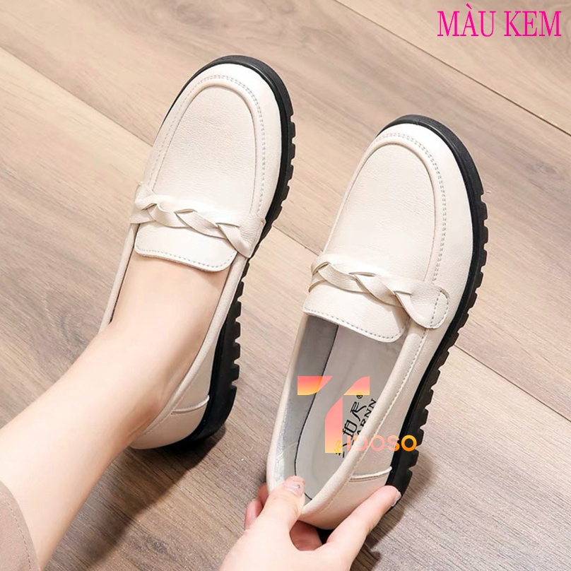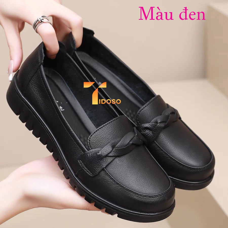 3. Giày lười nữ trung niên , giày tặng mẹ slip on da thật siêu mềm êm chân bảo hành 1 năm (giày doc nữ)