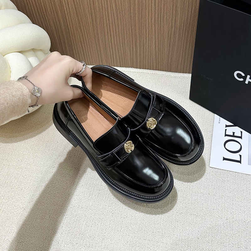 4. Giày Lười Nữ Loafer Kiểu Dáng Thon Chân Da Êm Mềm Thời Trang Đính Đồng Xu Hoa Trà Cao Cấp Dễ Mix Đồ Hot Trend 2025
