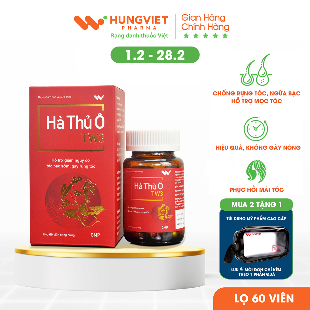 Bạn đang lo lắng vì tóc rụng thành từng nắm mỗi khi chải đầu, hay tóc bạc lốm đốm như người già dù chưa đến 40? Đừng để mái tóc "lão hóa ngược" đánh cắp sự tự tin! Viên uống Hà Thủ Ô TW3 HungViet Pharma – giải pháp "vàng" từ nhà Dược Trung Ương 3 – giúp bạn chặn đứng 90% tóc bạc sớm và phục hồi tóc chắc khỏe từ gốc chỉ sau 8 tuần.