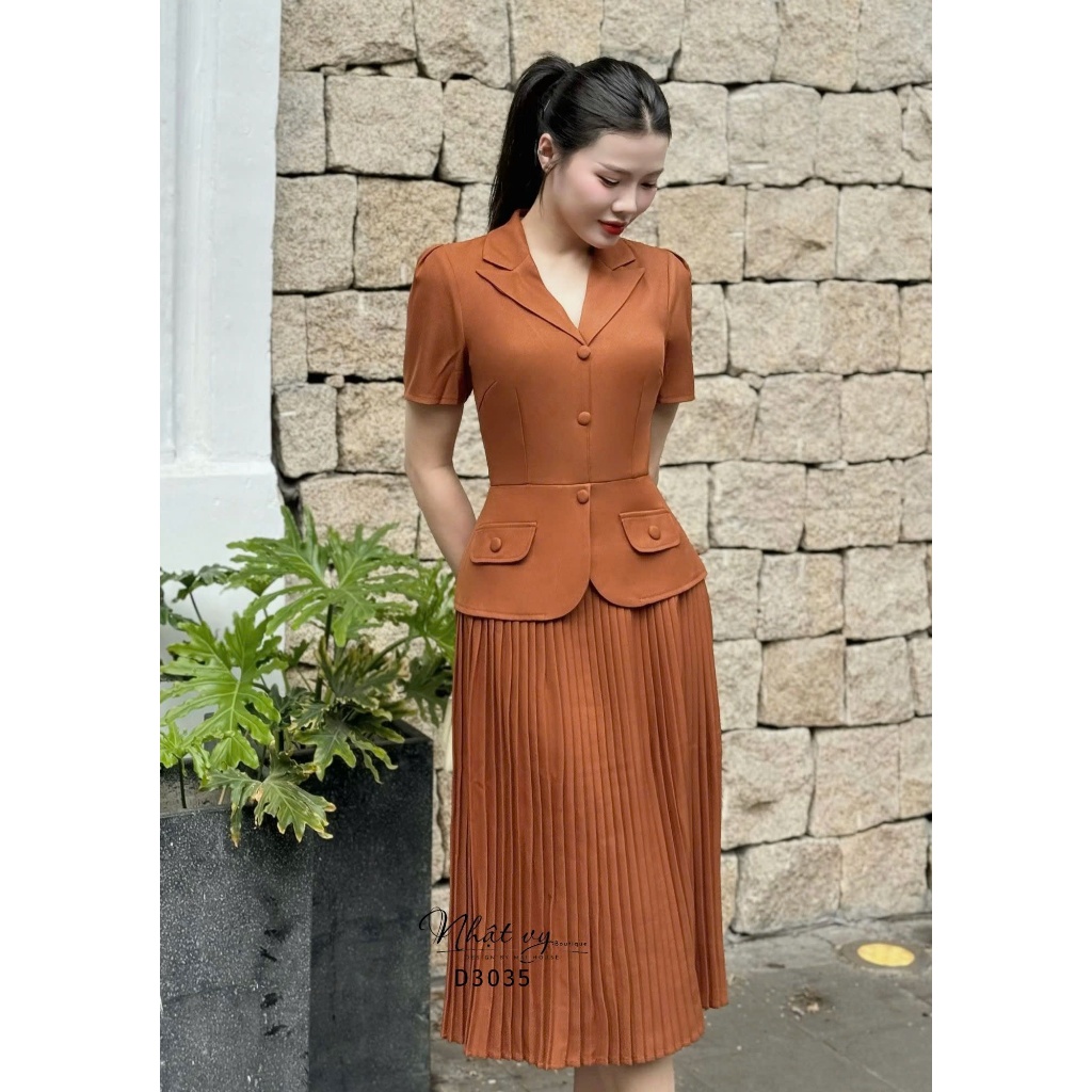 2. Đầm vest Nhật Vy nút bọc phối dập ly chất lụa phù hợp công sở dự tiệc thanh lịch - D3035