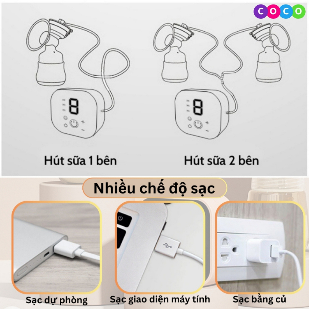 2. Máy hút sữa điện đôi COCOBEE cầm tay, 4 chế độ hút không đau, có massage, bảo hành 12 tháng