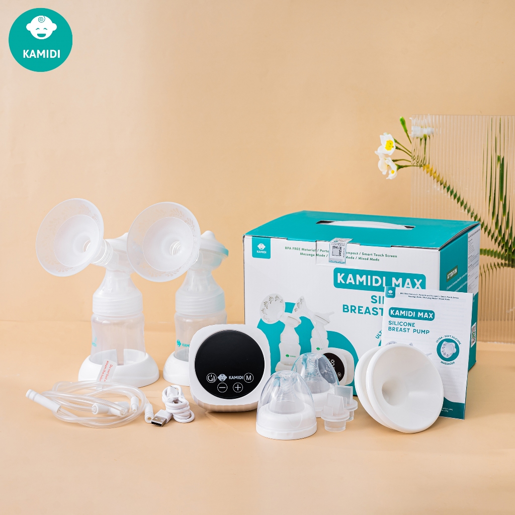 1. Máy Hút Sữa Điện Đôi Silicon Kamidi Max Phễu Hút Silicon Mềm Mại Kèm Bình Sữa Có Núm Ti Cho Bé