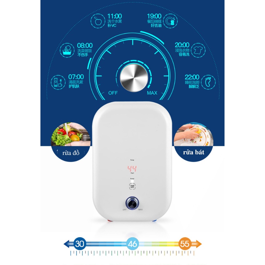 Thiết kế nhỏ gọn, thời trang: Thân máy nhỏ, chất liệu không gỉ, dễ lắp đặt ở phòng tắm hoặc bếp, nâng tầm thẩm mỹ.