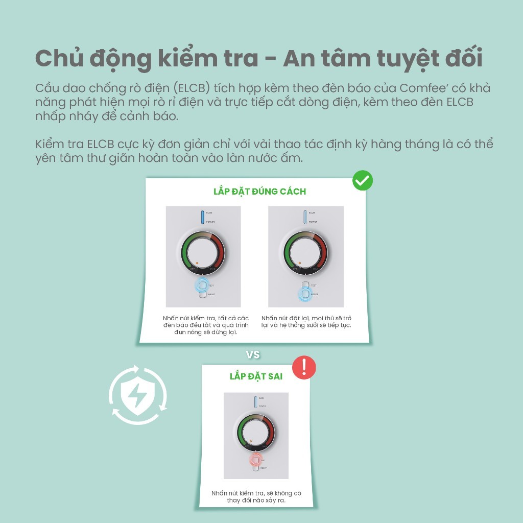 Tính năng ELCB chống giật cùng nhiều lớp bảo vệ đảm bảo an toàn tuyệt đối, là lựa chọn lý tưởng cho mọi gia đình hiện đại.