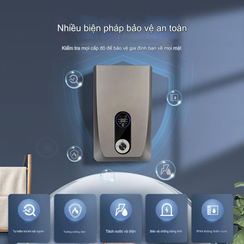 Tiết kiệm điện năng hiệu quả: Chỉ làm nóng khi sử dụng, giảm 30% chi phí điện so với bình nóng lạnh truyền thống.