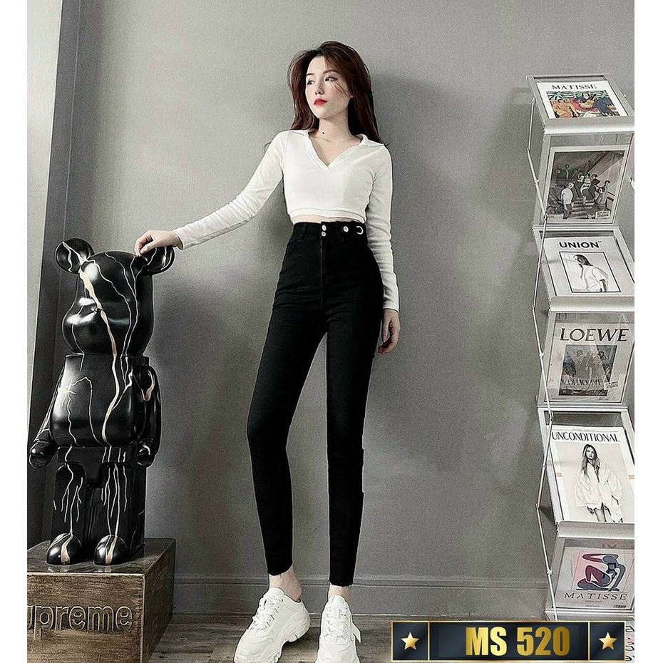 4. Quần jeans nữ dáng ôm skinny lưng cao Avocado, quần bò ống bó co giãn form dài phong cách trẻ trung