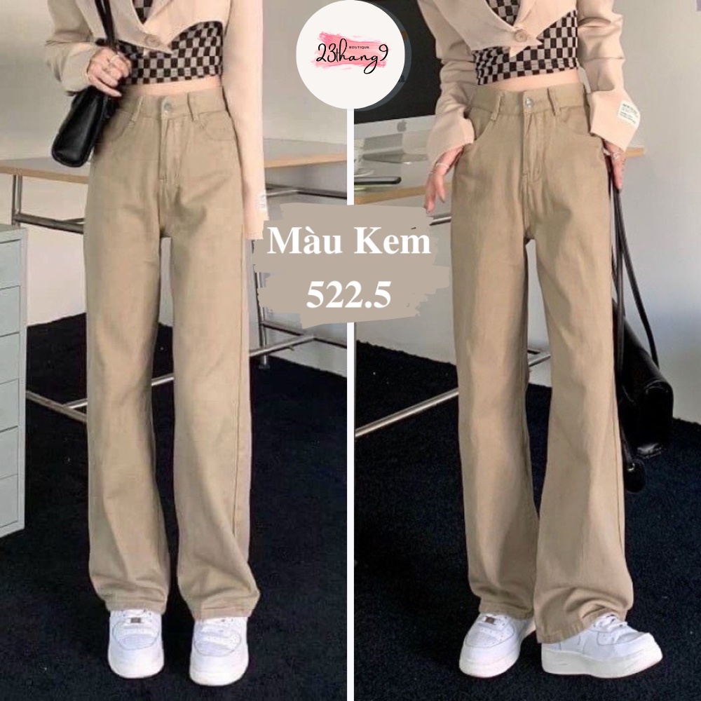 3. Quần jean ống rộng nữ , quần ống suông nữ màu đen trắng kem kaki jean form basic chất bò trẻ trung năng động 23thang9