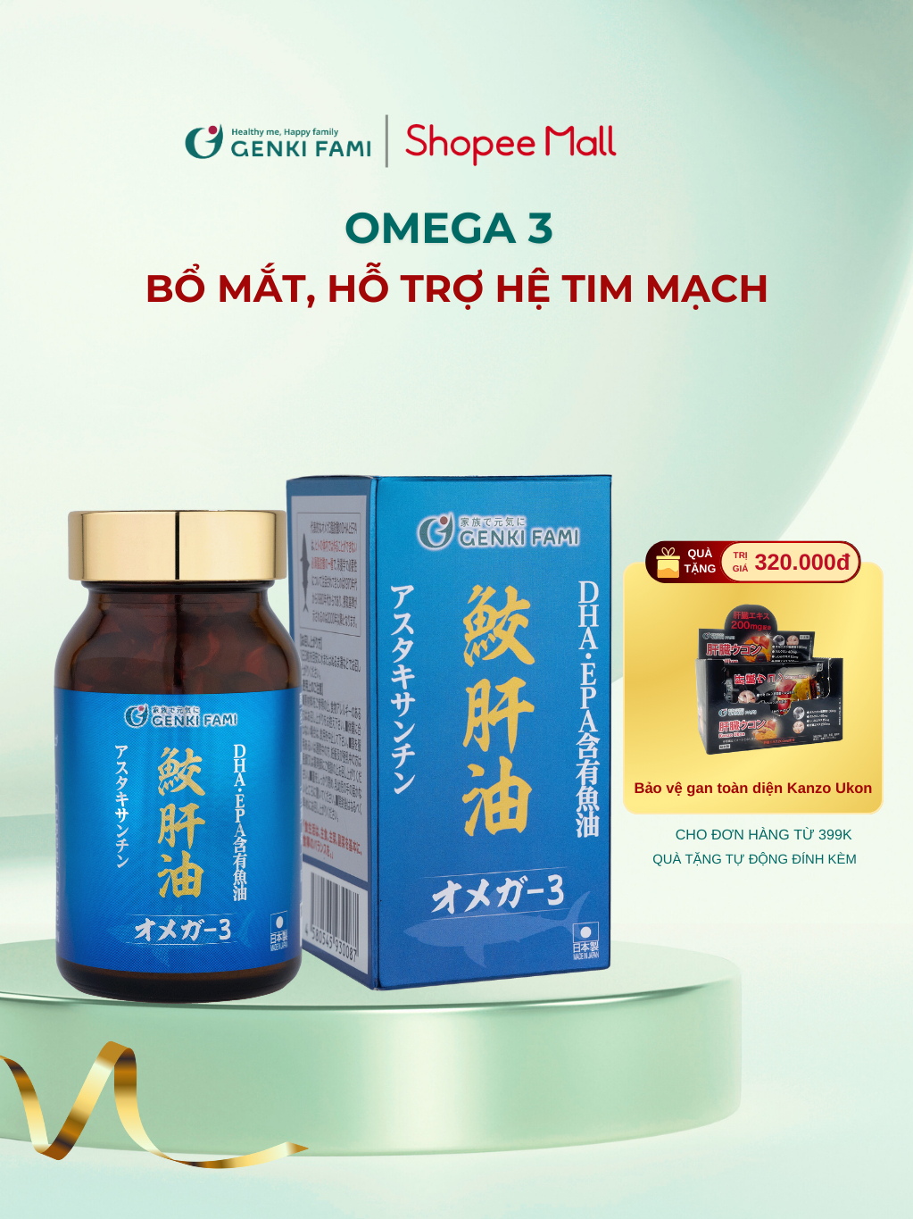 1. Dầu Gan Cá Mập Omega 3 Bổ Mắt, Bổ Não, Tốt Cho Tim Mạch Genki Fami Nhật Bản