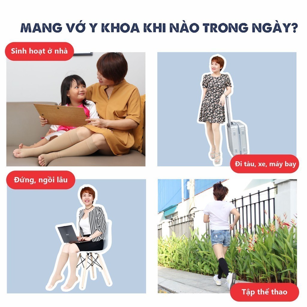 Nếu tĩnh mạch nổi dưới gối, chọn vớ đùi để áp lực phân bố đều từ mắt cá lên đùi. Với tổn thương khu trú ở bàn chân/cẳng chân, vớ gối hở ngón giúp dễ điều chỉnh và thoải mái khi mang giày. Đừng quên: Vớ đùi cần đo thêm vòng eo để tránh trượt khi di chuyển!