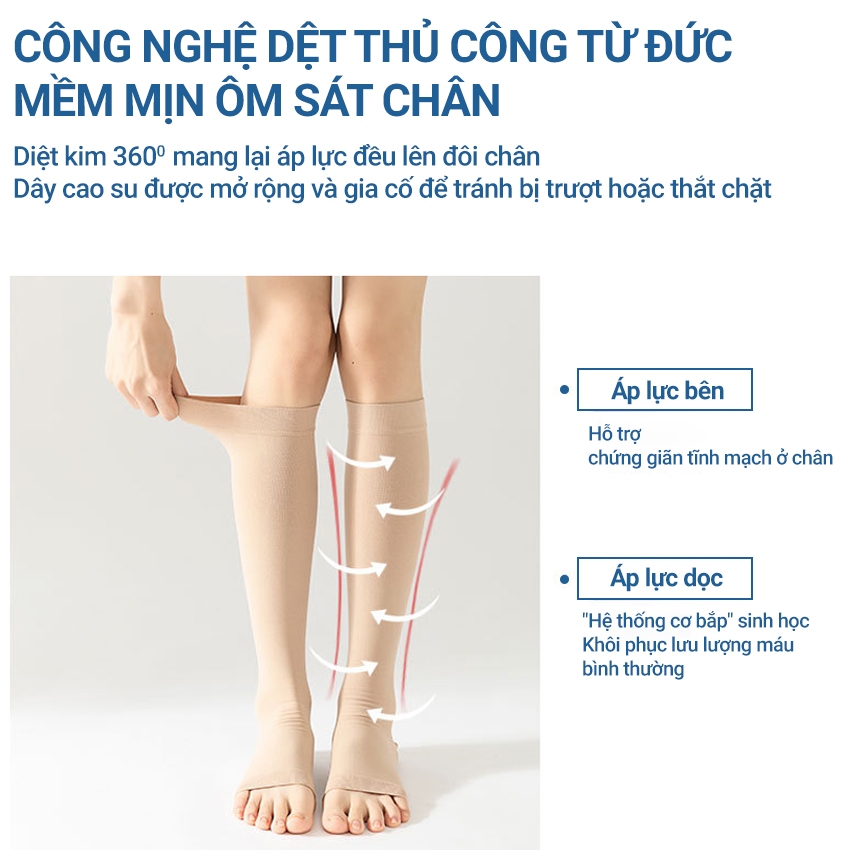 Thiết kế FreeSize co giãn 4 chiều "ôm trọn" chân người dùng dưới 65kg, đặc biệt lý tưởng cho bà bầu tháng cuối, nhân viên bán hàng hay tài xế đường dài – giảm 65% nguy cơ hình thành gân xanh ngoằn ngoèo chỉ sau 2 tuần sử dụng!