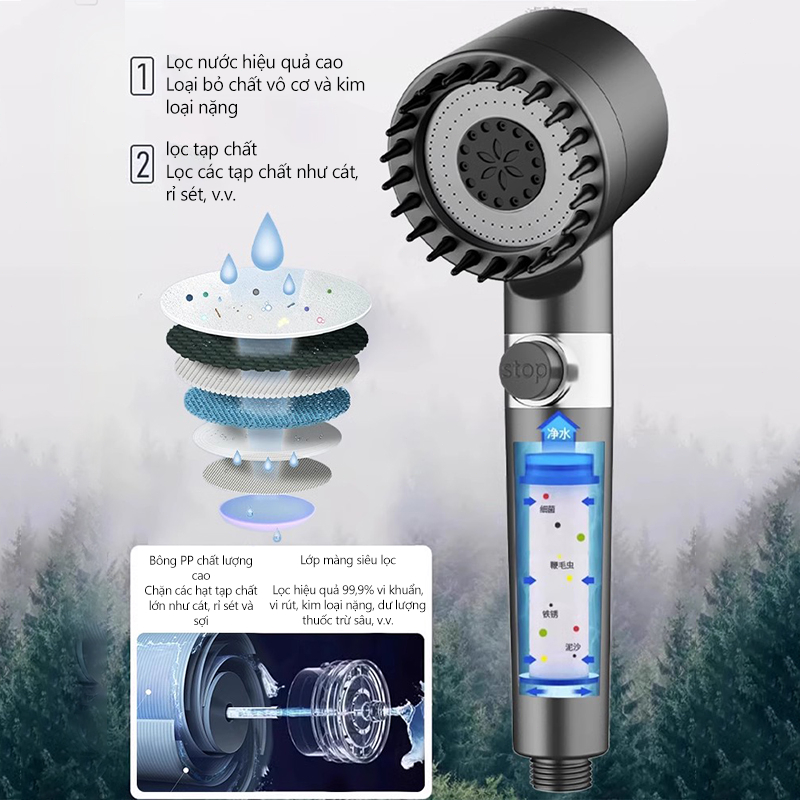 Sở hữu 5 chế độ phun thông minh điều chỉnh bằng bánh răng, kết hợp khớp xoay đồng thau 360°, sản phẩm này không chỉ tăng áp lực nước gấp 3 lần mà còn lọc sạch 96% tạp chất - giải pháp hoàn hảo cho làn da nhạy cảm và nguồn nước giếng khoan.