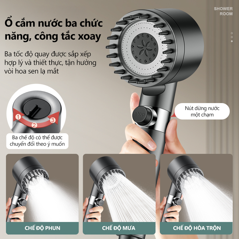 Sản phẩm tích hợp 3 chế độ phun thông minh (lọc nước - mưa rào - tiết kiệm) cùng ống dẫn 1.5m linh hoạt, cho phép bạn "điều khiển" dòng nước chỉ bằng 1 tay - từ massage cổ vai gáy đến xả trôi mọi mệt mỏi sau 8 giờ làm việc căng thẳng.
